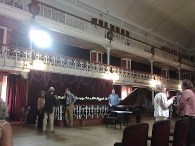 Ele tocou Chopin, Debussy, Ravel e Gershwin. A noite estava muito quente, pelo que se abriram as janelas. De fora, vinham sons da rua e de música popular, o que levou a fecharem-se as janelas. Algo estranho mas agradável.