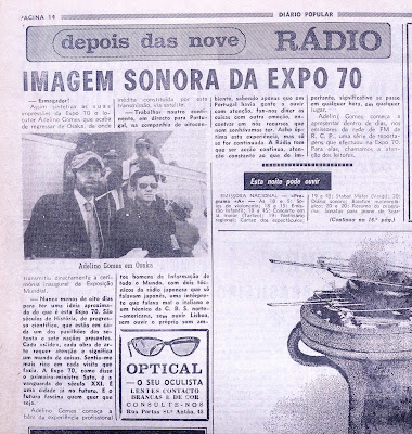 Diário Popular, 28 de março de 1970). O jornalista falaria para Portugal via satélite, sem retorno de som de Lisboa, junto a técnicos que apenas falavam japonês e a oitocentos homens de informação de todo o mundo.