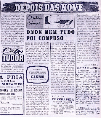 Há dias, publiquei um recorte de imprensa do Diário Popular (22 de setembro de 1969), artigo de Fernando Correia com o título "Televisão e Sociedade".