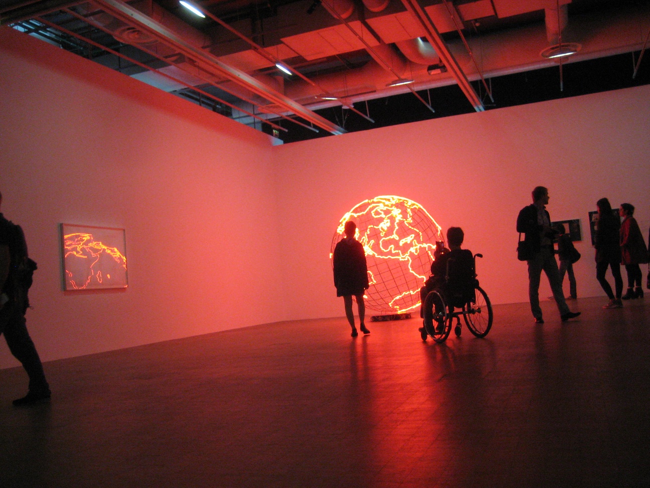 Mona Hatoum nasceu em 1952 no Líbano, filha de pais palestinianos. Quando a guerra civil rebentou no seu país, ela estava em Londres, não podendo regressar. Matriculou-se numa escola de arte em Londres, tendo adquirido a nacionalidade inglesa. Desde 2003, divide o seu tempo entre Londres e Berlim.Agora, uma exposição completa das sua obras, nomeadamente instalações desde o final da década de 1970, está presente no Centre Pompidou. Ela atraiu inicialmente pelas suas performances e trabalhos em vídeo com uma expressão assente em motivações sociais e políticas. Depois, começou a trabalhar em esculturas e grandes instalações. A sua obra articula-se entre minimalismo, arte cinestésica e conceptual com o surrealismo.