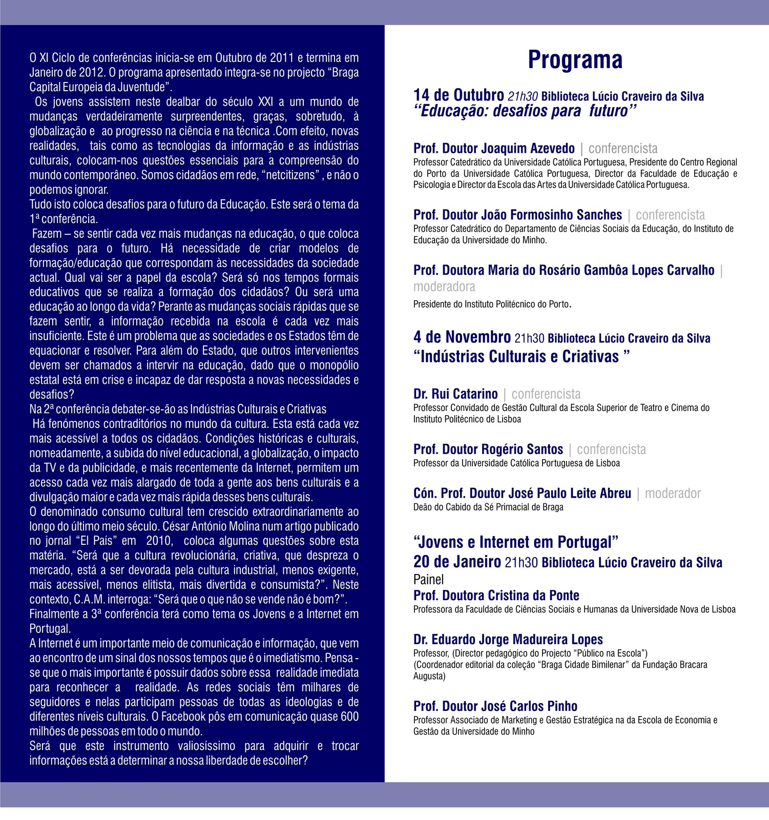 CONFERÊNCIAS EM BRAGA