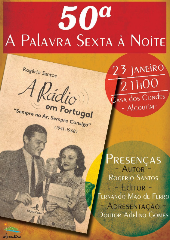 Na Casa dos Condes, Biblioteca Municipal de Alcoutim, no próximo dia 23 de Janeiro, pelas 21:00, a quinquagésima tertúlia A Palavra Sexta à Noite, num mês dedicado à rádio.