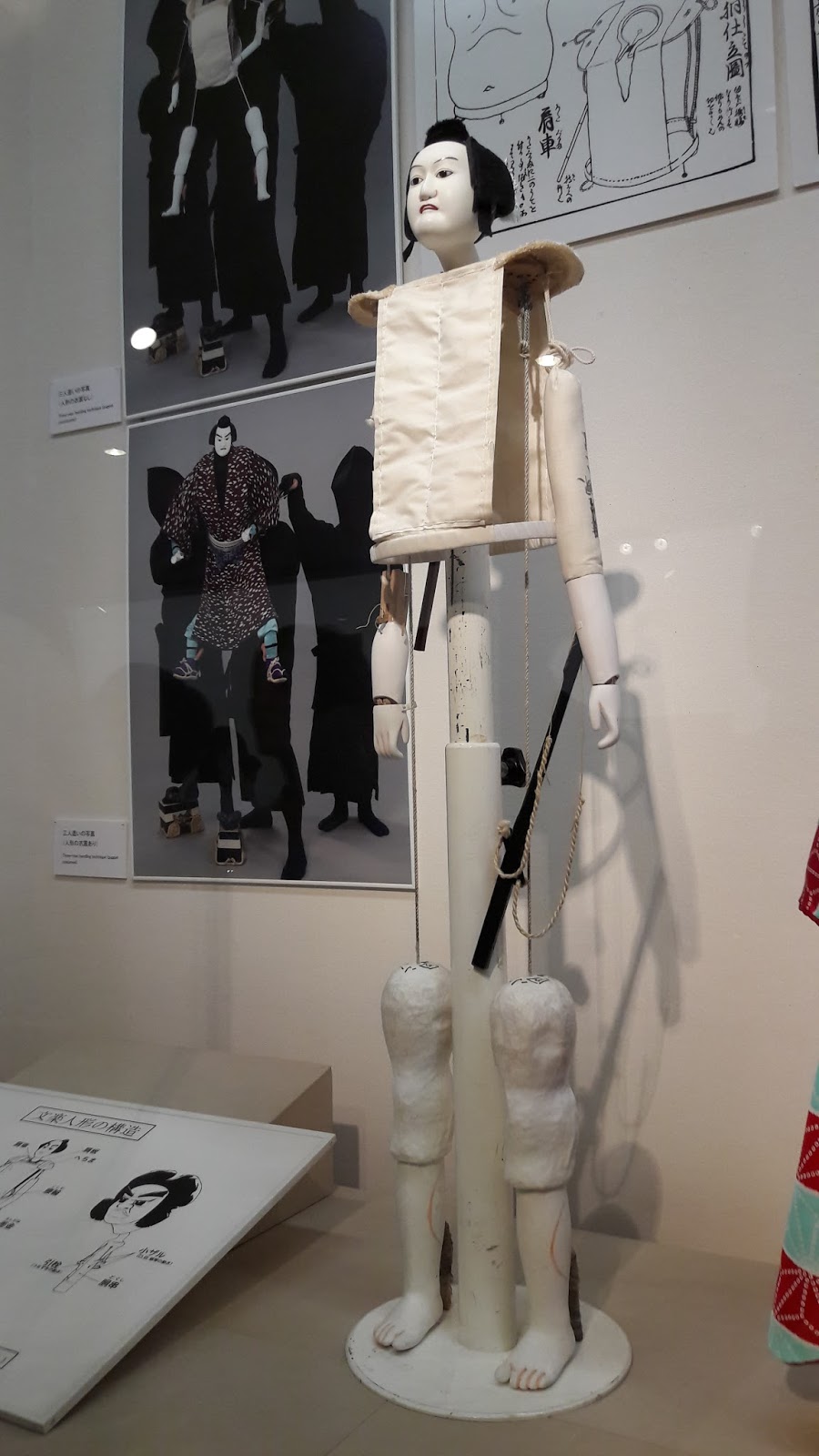 Em termos de guarda-roupa, este é mais pequeno do que na realidade e tem uma abertura atrás para a mão do marionetista. Apesar de o guarda-roupa no teatro bunraku ser mais estilizado que no teatro kabuki, os bonecos apresentam maior opulência (