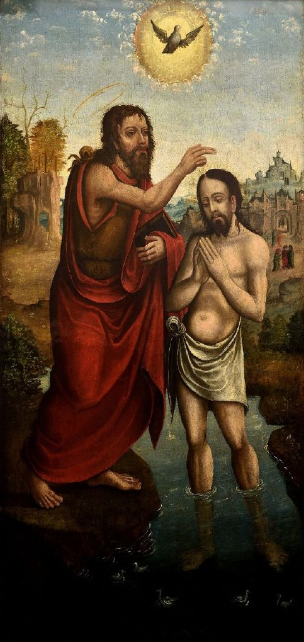 Batismo de Cristo, 1550-60, Mestre de Lordosa - Oficina de Viseu. Proveniência: Igreja Paroquial de Vil de Soito. Óleo sobre madeira]