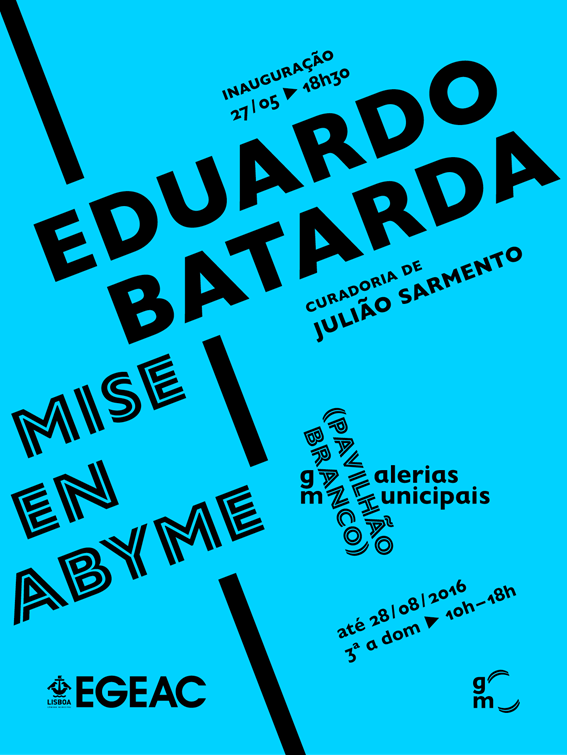 Mise en Abyme é o resultado de proposta que o artista, e agora curador, Julião Sarmento (Lisboa, 1948) fez a Eduardo Batarda (Coimbra, 1943). A exposição reúne no Pavilhão Branco um conjunto de 21 pinturas, algumas obras nunca antes mostradas, de períodos distintos que percorrem quatro décadas de trabalho, desde 1966 a 2002.No dia da inauguração, será também lançado o catálogo relativo à exposição. Nesta publicação o curador procura, através de uma cronologia iniciada em 2016, percorrer todos os anos com produção artística de Eduardo Batarda até 1965, fazendo representar cada ano através de uma obra. O catálogo conta com textos de Julião Sarmento, Pedro Faro e David Barro [texto da organização].