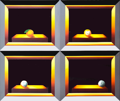 Alentejana, hoje às 17:00, João Pinharanda e João Queiroz falaram sobre as obras expostas na Fundação Portuguesa das Comunicações. No vídeo abaixo, incluo a primeira parte da intervenção de João Pinharanda, que falou nomeadamente da estranheza da obra exposta e da relação com o desenho e a escultura. O crítico de arte e autor do catálogo sobre a exposição destacou bastante a importância do espaço nas obras expostas. Nas paisagens presentes não existe uma linha de horizonte, mas signos, como bandeiras ou pontos, em que o vertical assume particular relevo. Por seu lado, João Queiroz, evidenciou a negociação entre formas ou entes coloridos (linhas, pontos, cores). Na sua linguagem mais filosófica (que juntou à de historiador em Pinharanda), ele vê conjuntos de elementos muito diferenciados que lutam nas obras mas conseguem um acordo entre si.